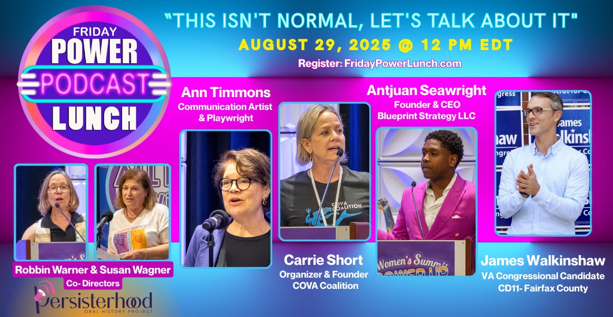 Robbin Warner, co-founder of Postcards4VA, and Susan Wagner, co-founder of Markers for Democracy, will discuss the new Persisterhood Oral History Project, launched in June 2025 to preserve the stories of women stepping into politics.